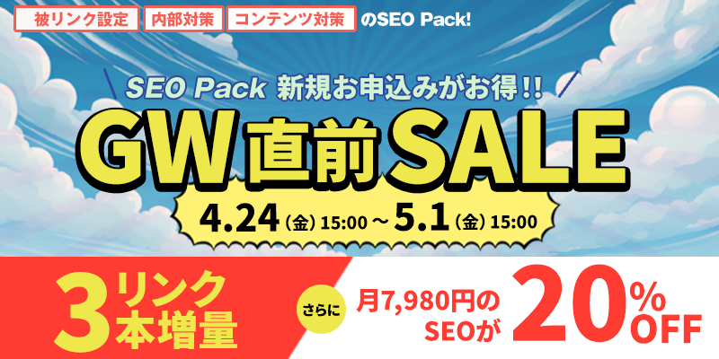 SEO Pack「新規お申込み」を【定価より20%割引】! 更に【外部リンクを通常10本のところ+3本増量設定】いたします!